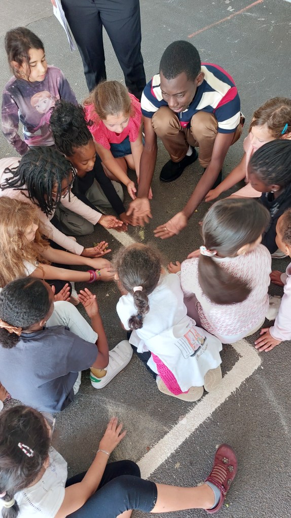 Nos deux correspondants ont pu répondre aux diverses questions des élèves. Ils ont appris des chansons aux enfants et des jeux lors des récréations. Ils ont également parlé des arbres et des plantes de chez eux, thème fédérateur des classes de la correspondance pour l’année scolaire. Quel joie pour les enfants de déguster les noix de cajoux rapportées par Papa Ibrahima de Rufisque qui proviennent de l’anacardier!