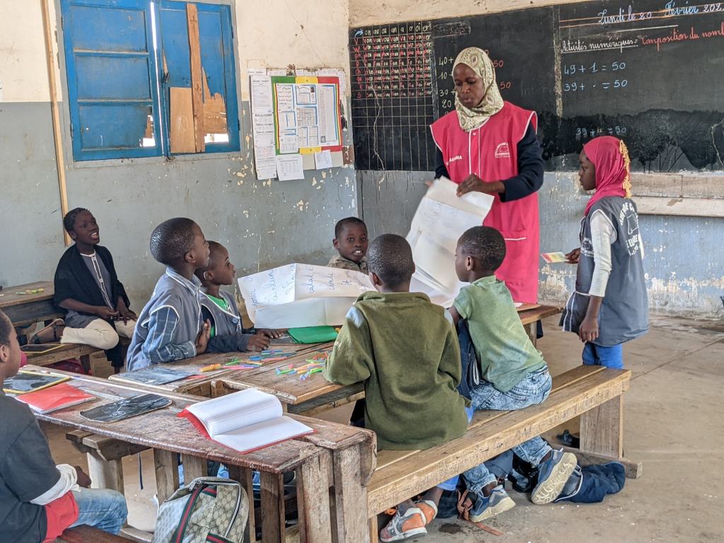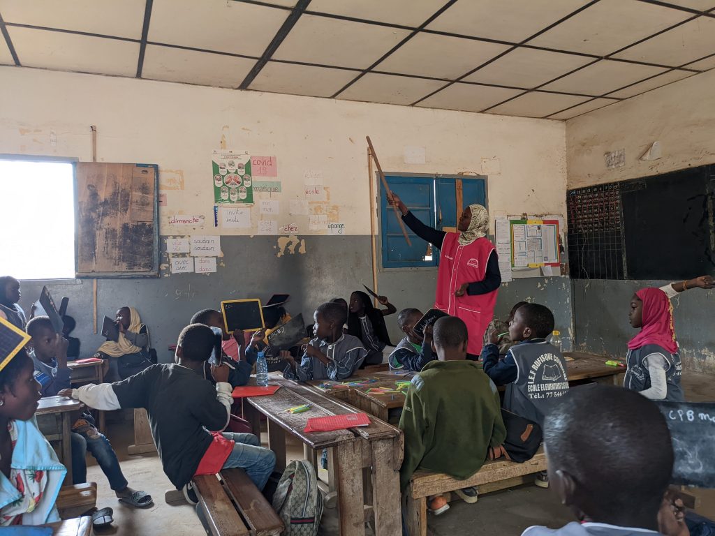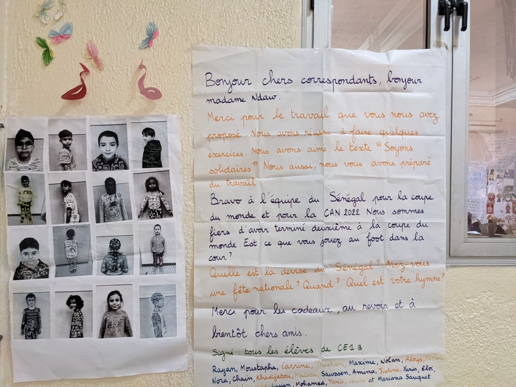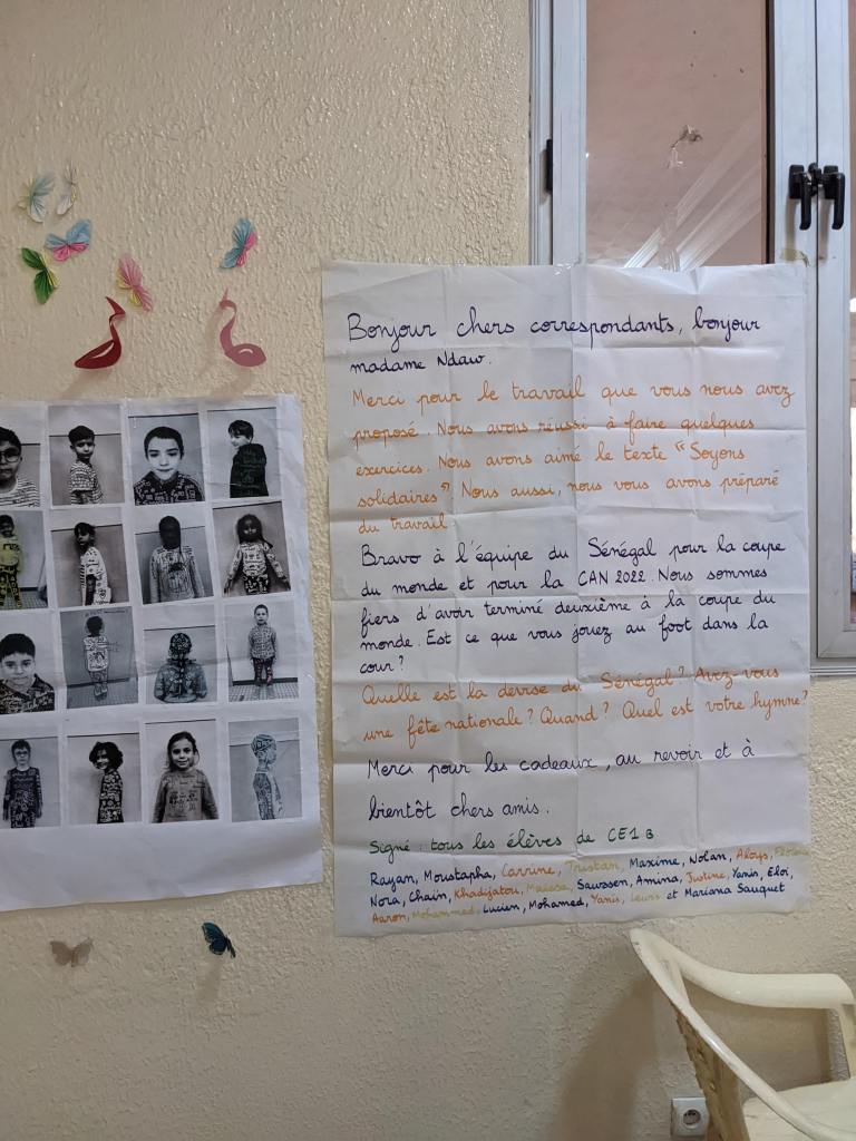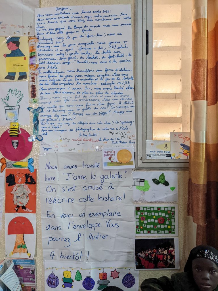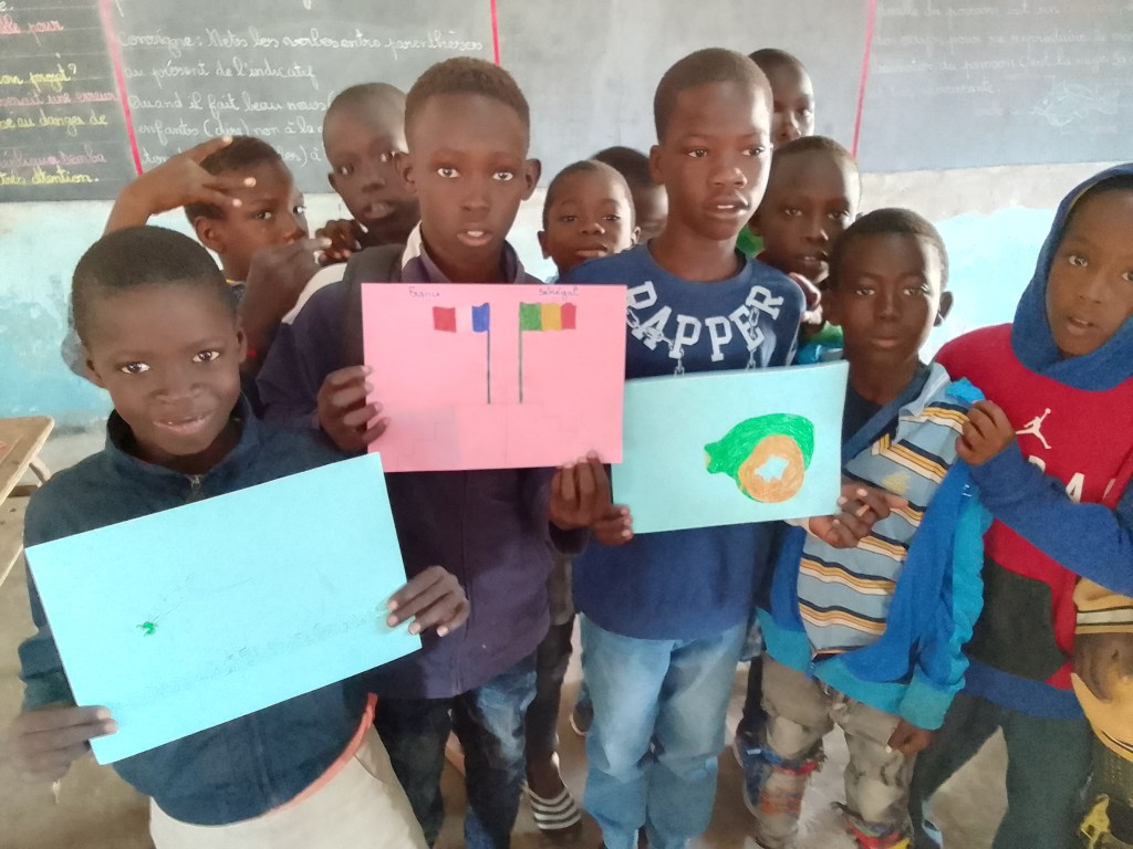 Ils ont observé les méthodes d’enseignement et participé à la vie de la classe en lisant des histoires aux élèves, en leur apprenant des chansons, en faisant des arts visuels, en montrant des vidéos de projets communs sur ce qui s’est faits dans les classes nantaises… Les écoliers rufisquois ont pu poser leurs questions.