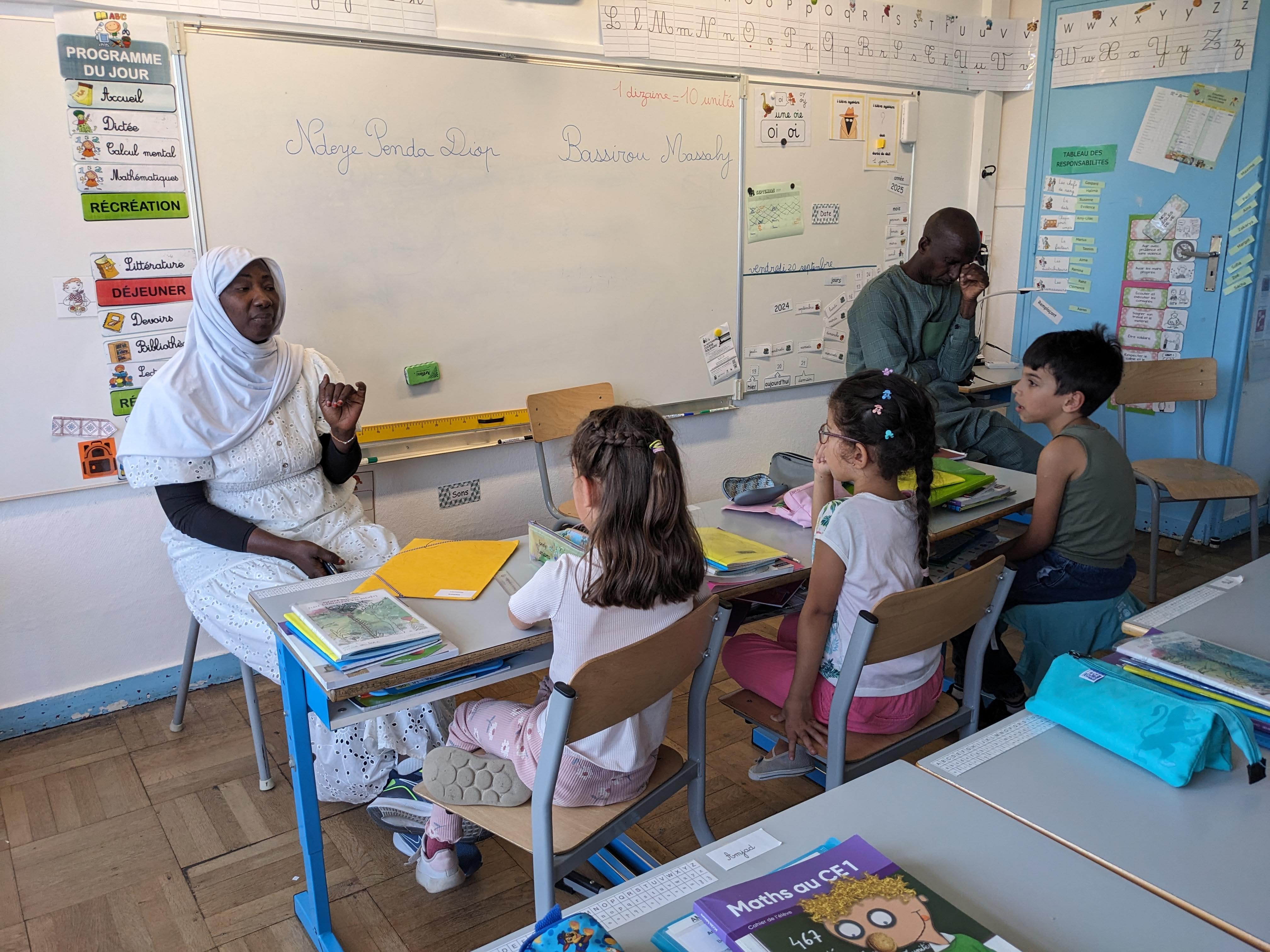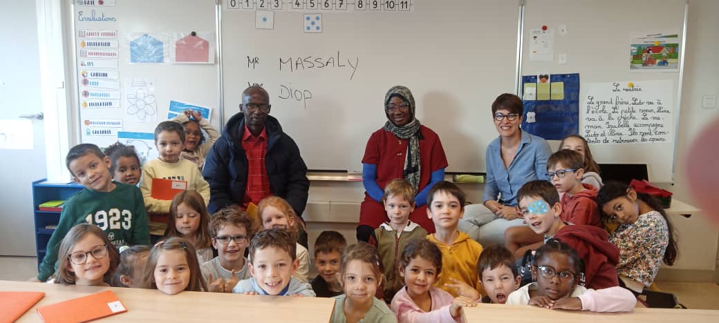 Le séjour s’achève par un temps festif dans une école afin d’ouvrir ces échanges aux familles de la correspondance. Les enfants et leurs parents sont conviés, au sein de l’école après la classe, à échanger avec les deux professeurs sénégalais, à découvrir les malles pédagogiques (instruments sénégalais, graines, albums photos, tissus…). Ce temps de partage s’est fait autour d’un verre de Bissap ou de Bouye accompagné de crêpes.