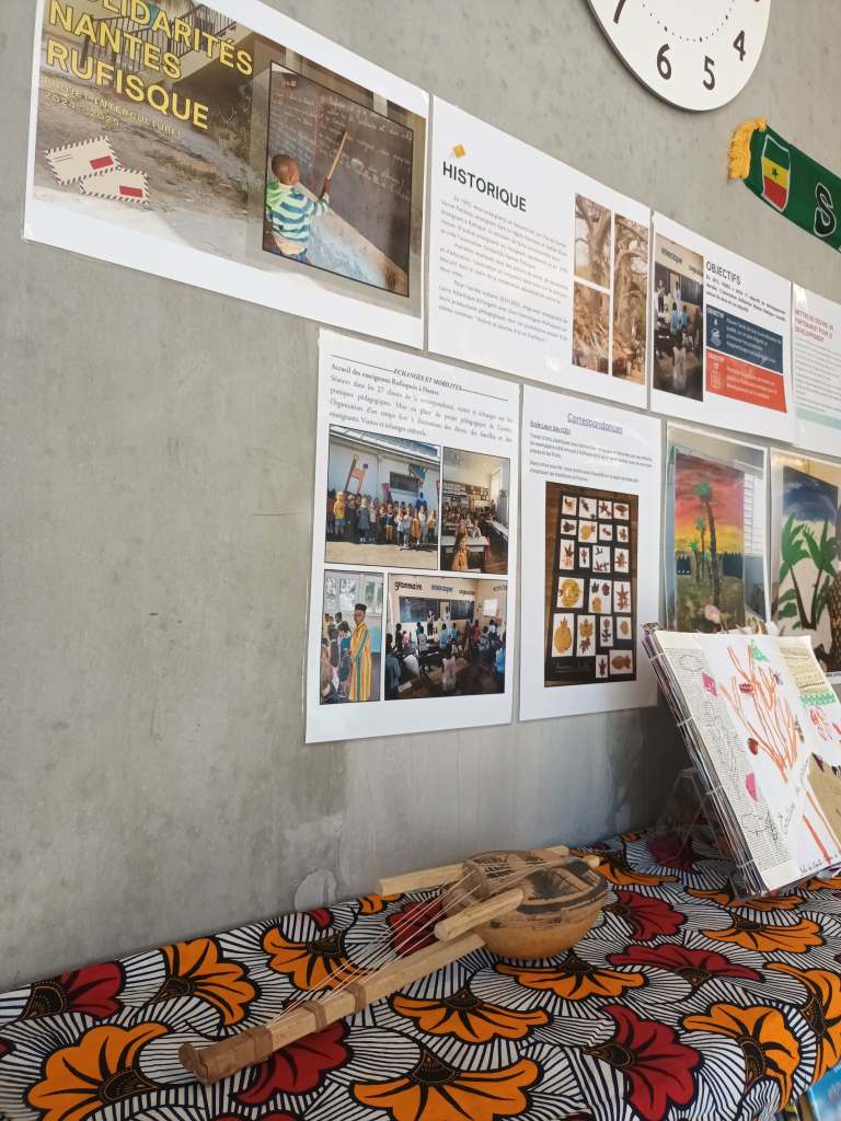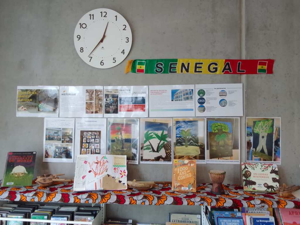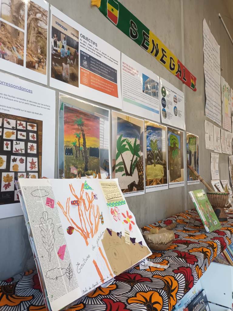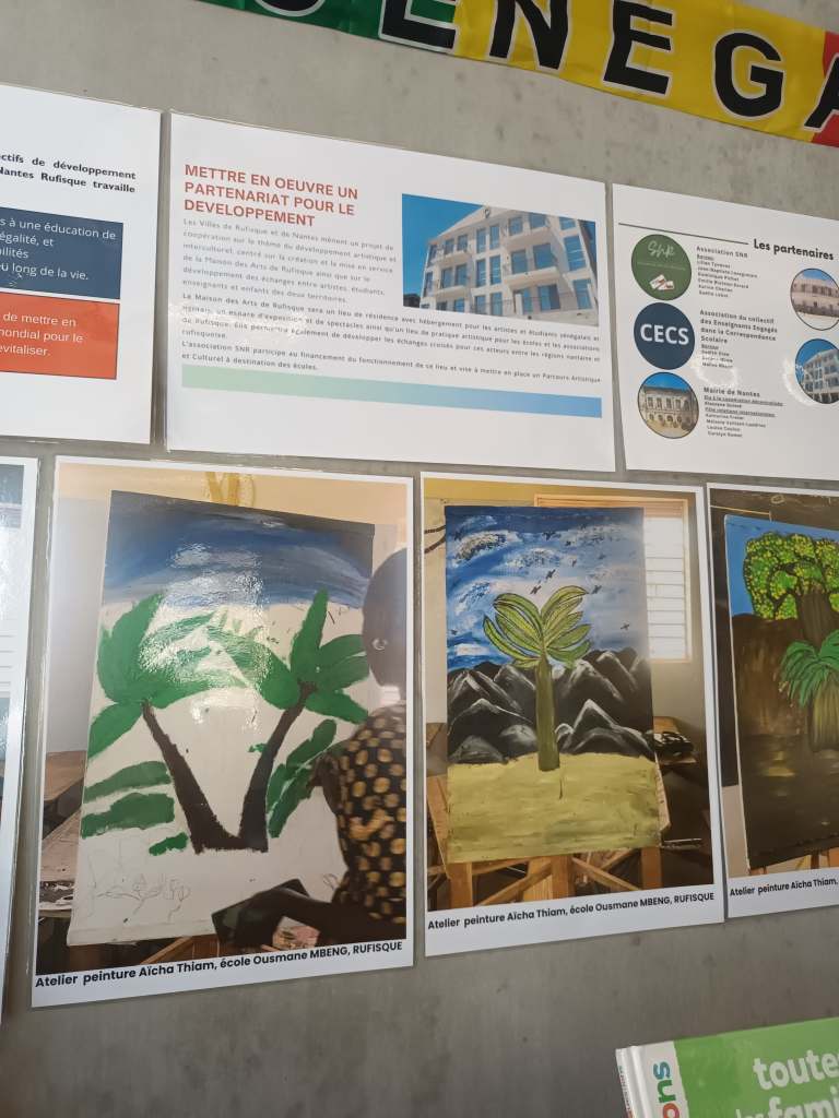 Du 25 mars au 4 avril 2025, l’association SNR a exposé des travaux des écoles primaires correspondant avec les écoles de Rufisque. 27 classes sont cette année engagées dans un projet interculturel autour du thème Arbres et plantes d’ici et d’ailleurs. Courriers, photos, productions artistiques ont ainsi été exposées à la Médiathèque Erdre Batignolles.