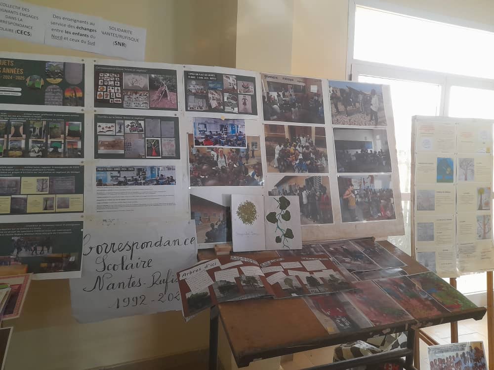 La salle où étaient exposés les travaux des classes se situait au rez de chaussée. Le maire adjoint de Nantes a commencé la visite. Josiane a pu présenter ce travail issu des deux associations CECS et SNR. Correspondances entre classes initiées en 1992 et validées par la création d’associations en 1995, SNR, SRN soutenues par les villes.