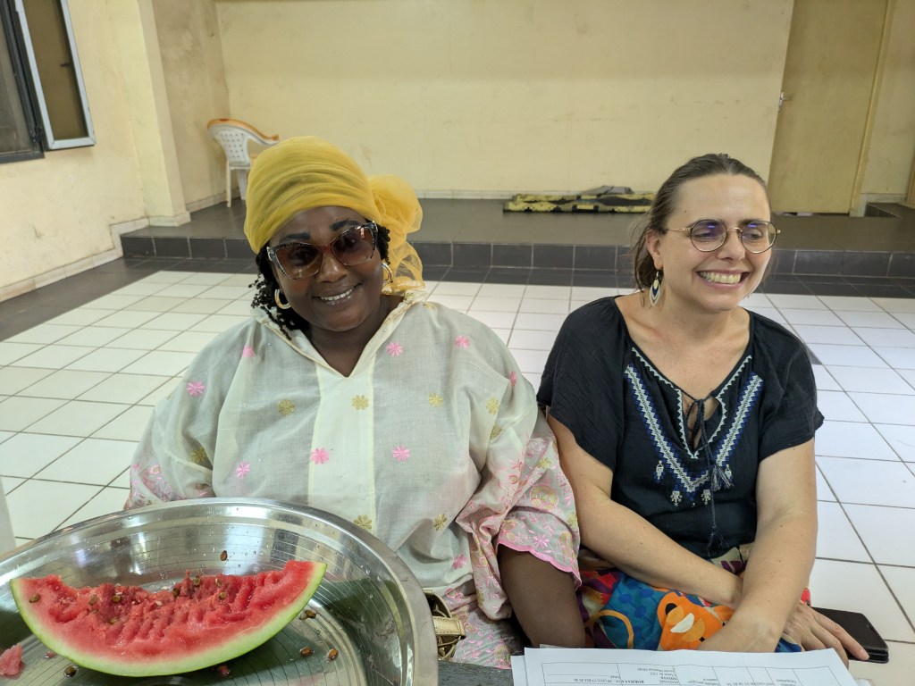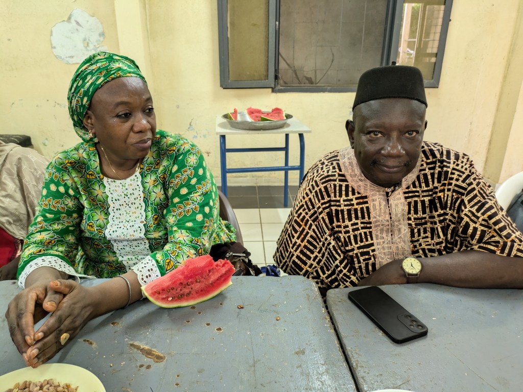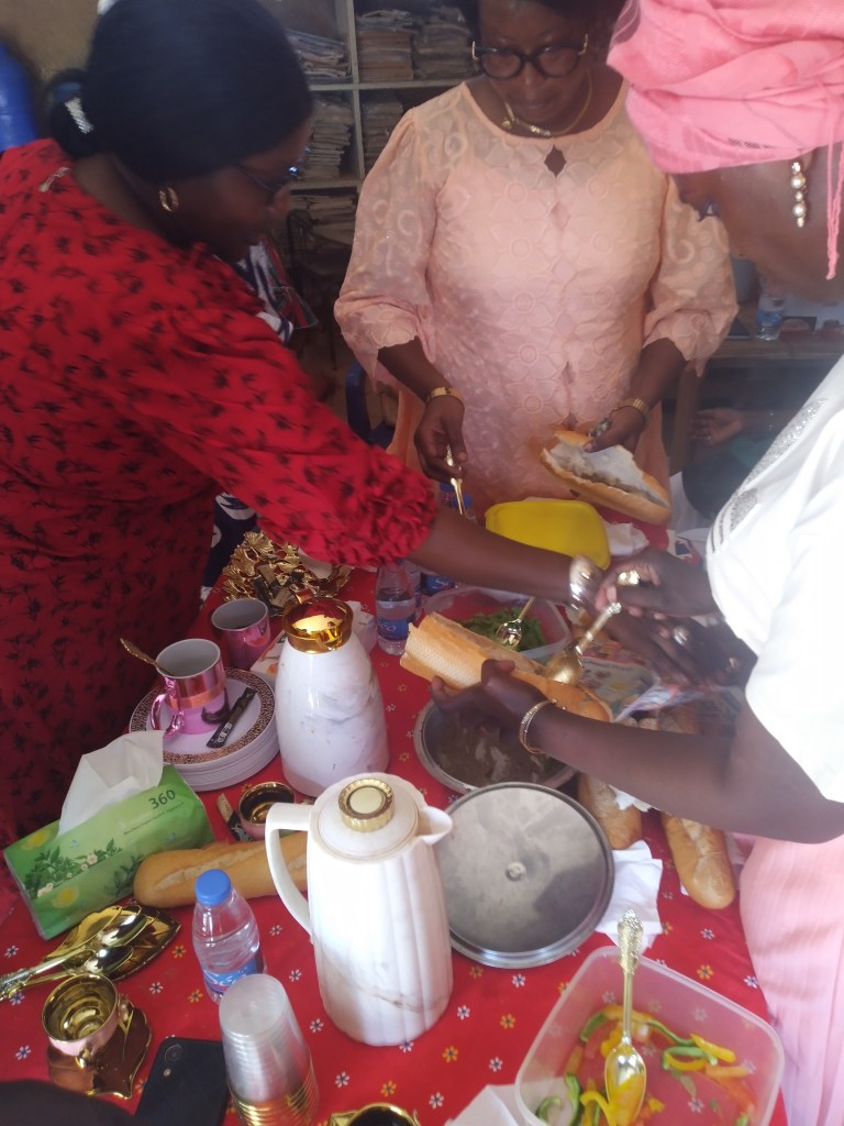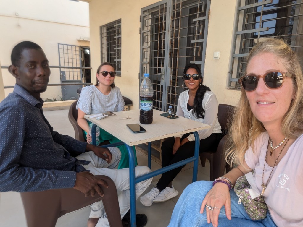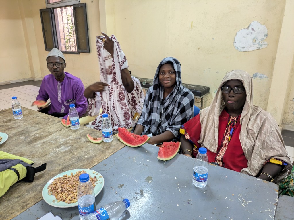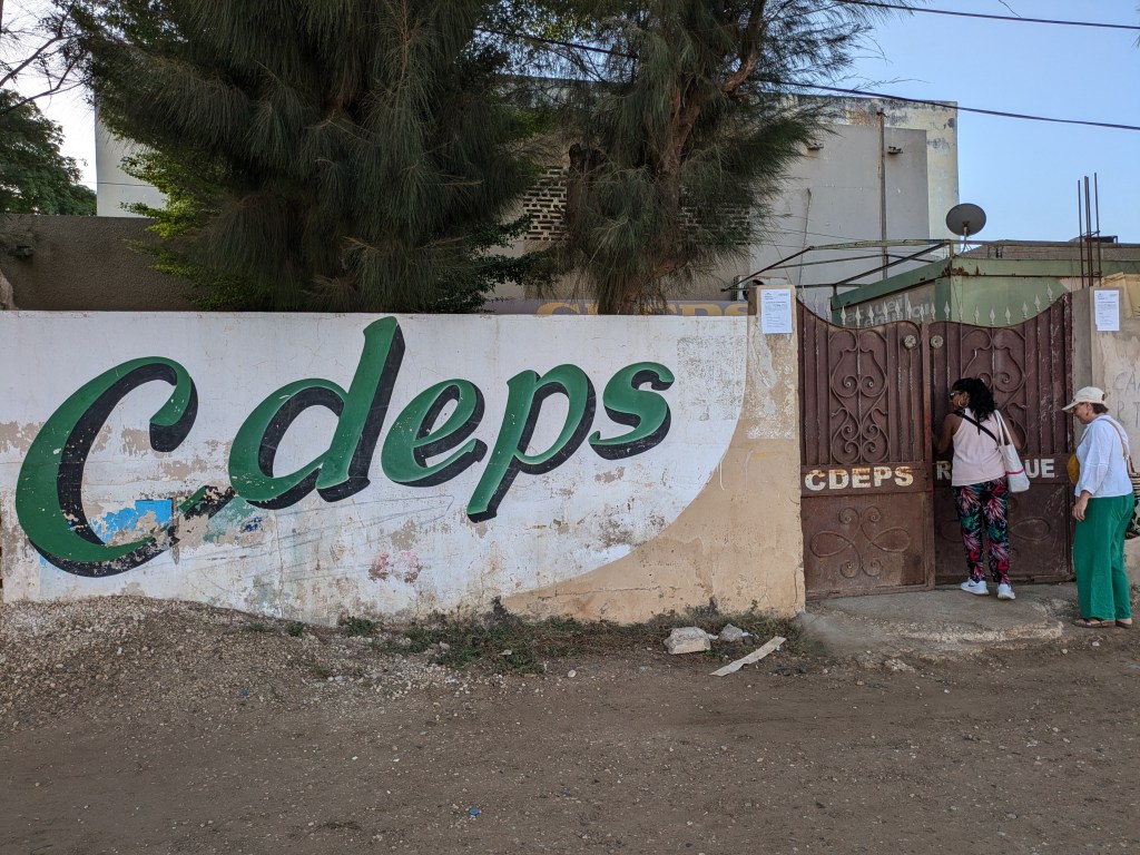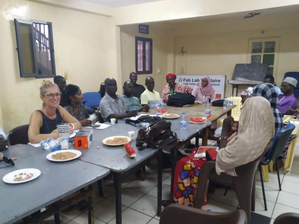 Papa Ibrahima (professeur) et Mor Diaw ( responsable de la coopération internationale à la mairie de Rufisque) sont venues chercher les enseignantes à l’aéroport, quelle joie de voir des visages connus à notre arrivée! Les collègues sont arrivées à la Maison des éclaireurs à Rufisque et une réunion a eu lieu avec les membres du CECS afin de valider le planning du séjour.