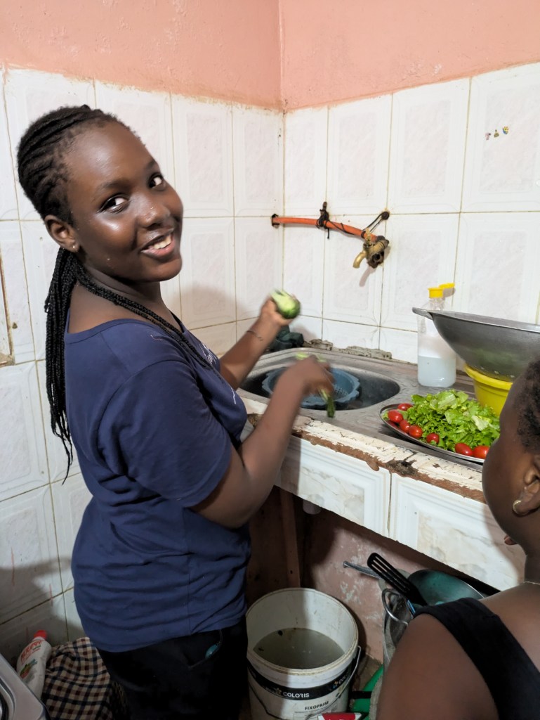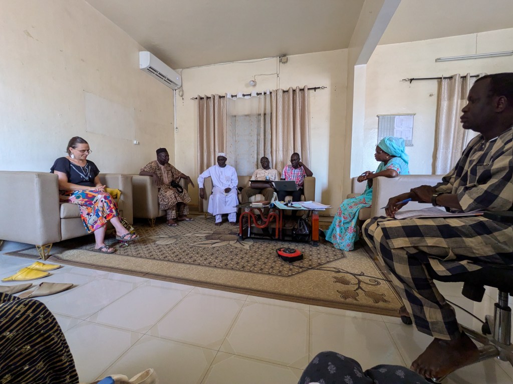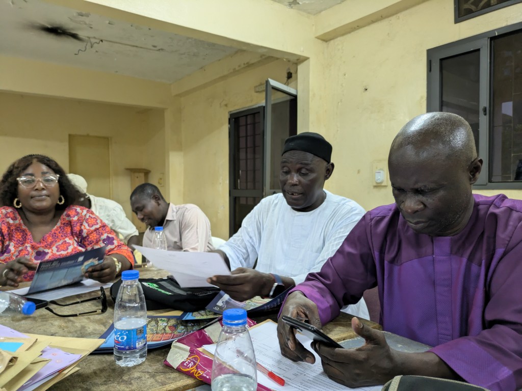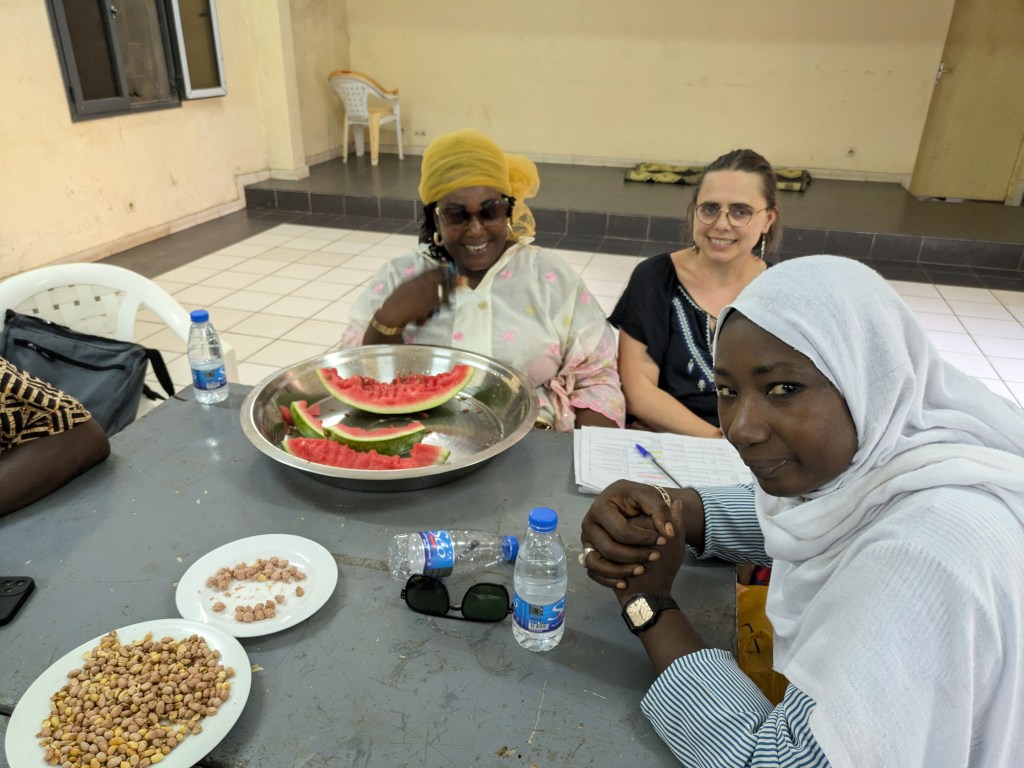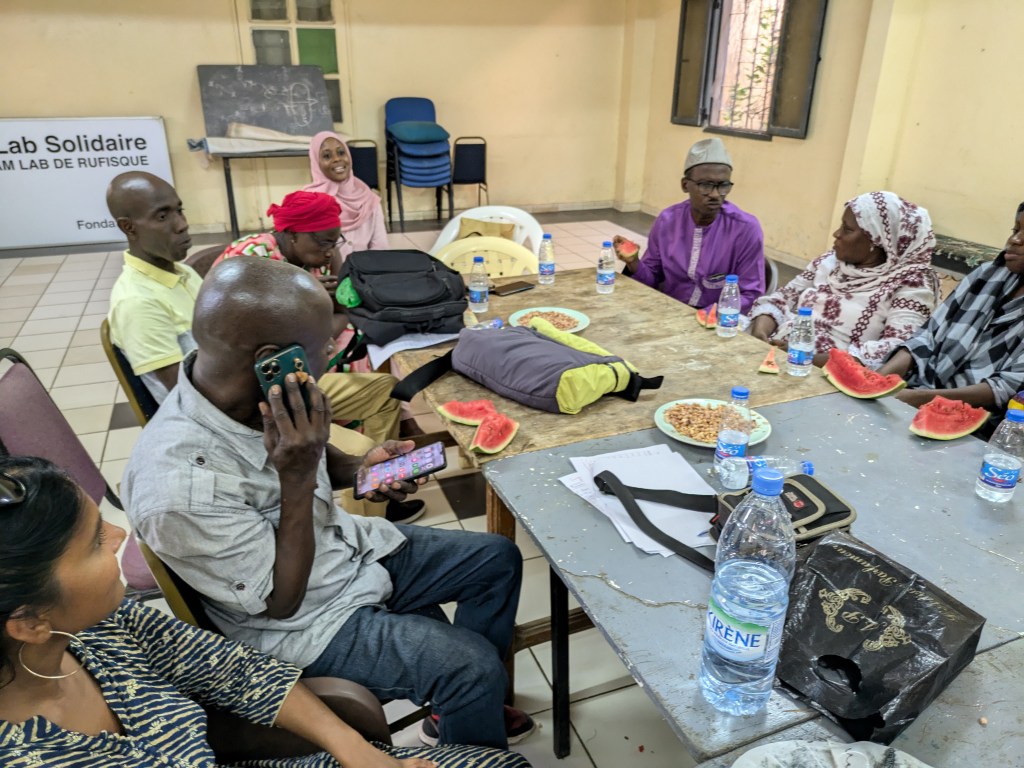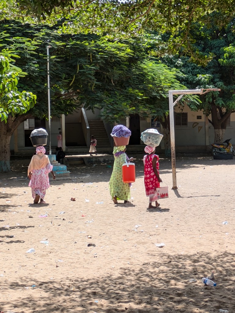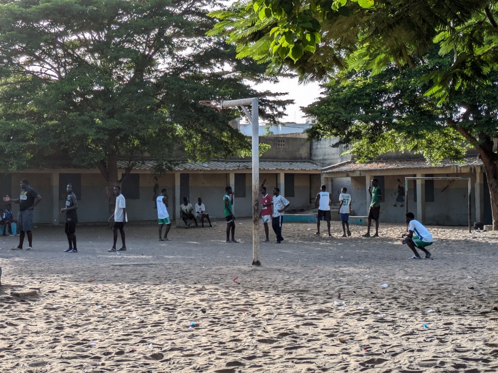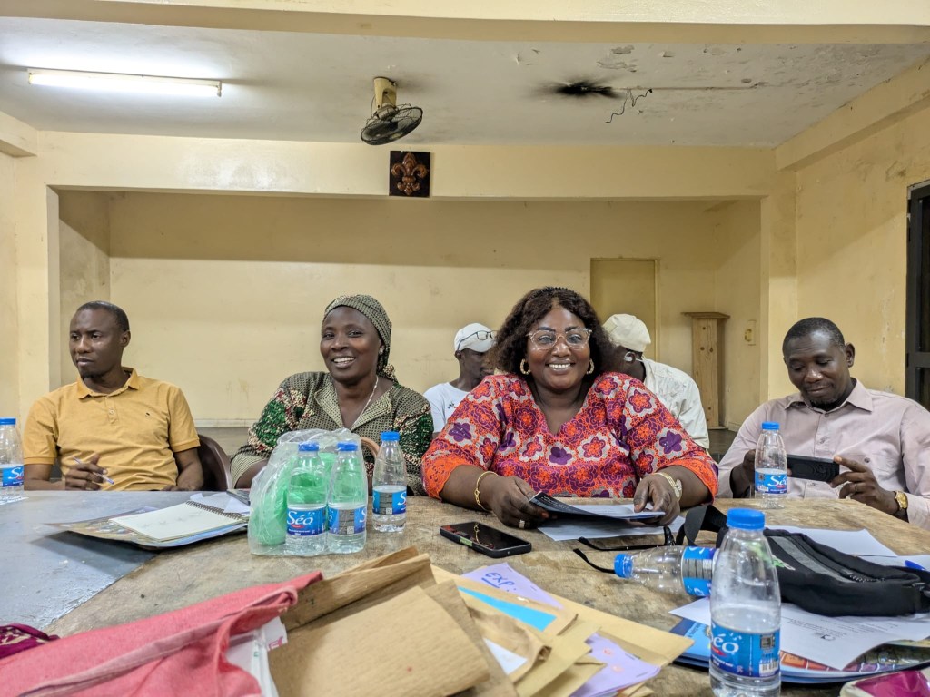 Papa Ibrahima (professeur) et Mor Diaw ( responsable de la coopération internationale à la mairie de Rufisque) sont venues chercher les enseignantes à l’aéroport, quelle joie de voir des visages connus à notre arrivée! Les collègues sont arrivées à la Maison des éclaireurs à Rufisque et une réunion a eu lieu avec les membres du CECS afin de valider le planning du séjour.