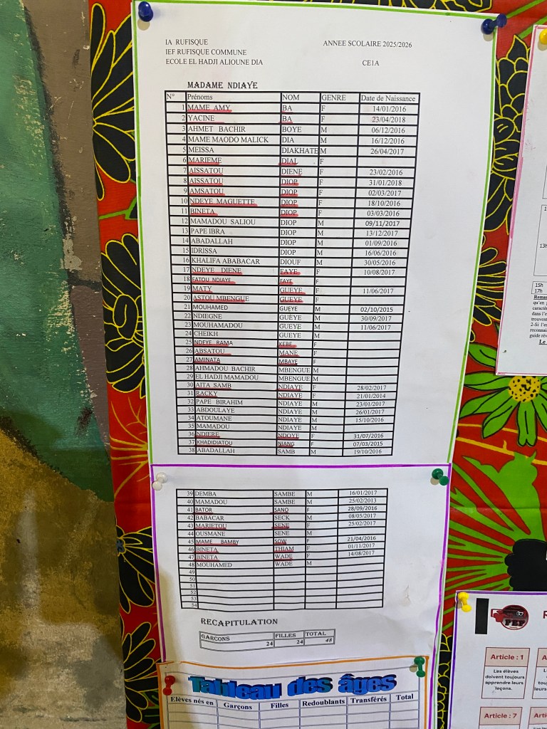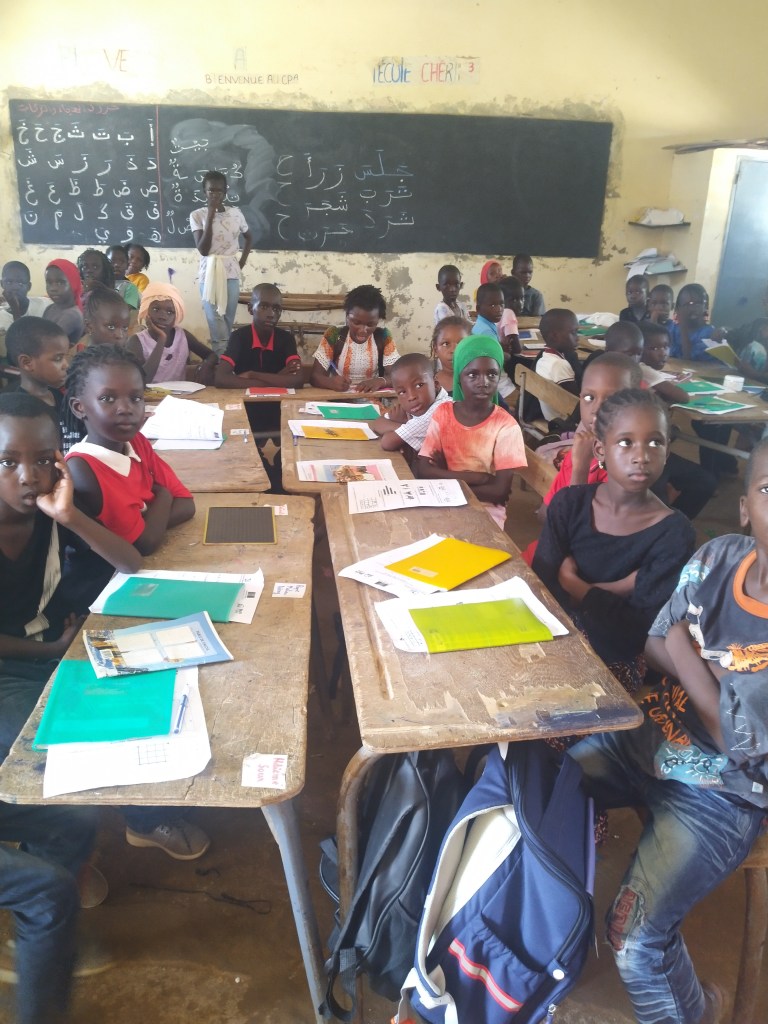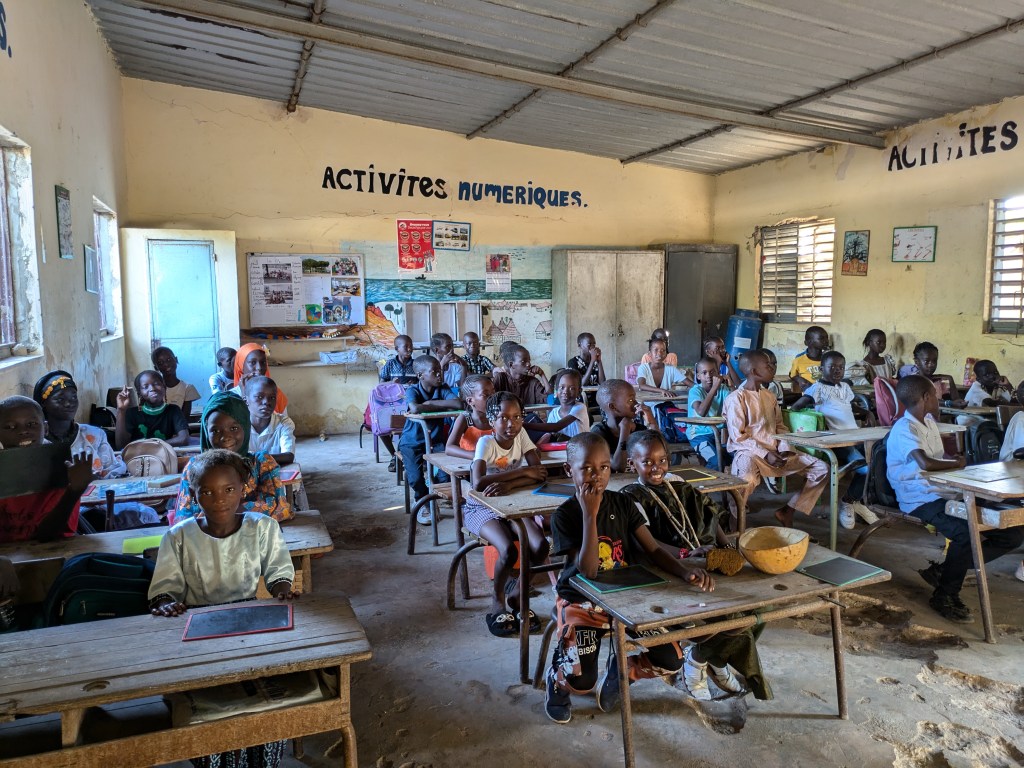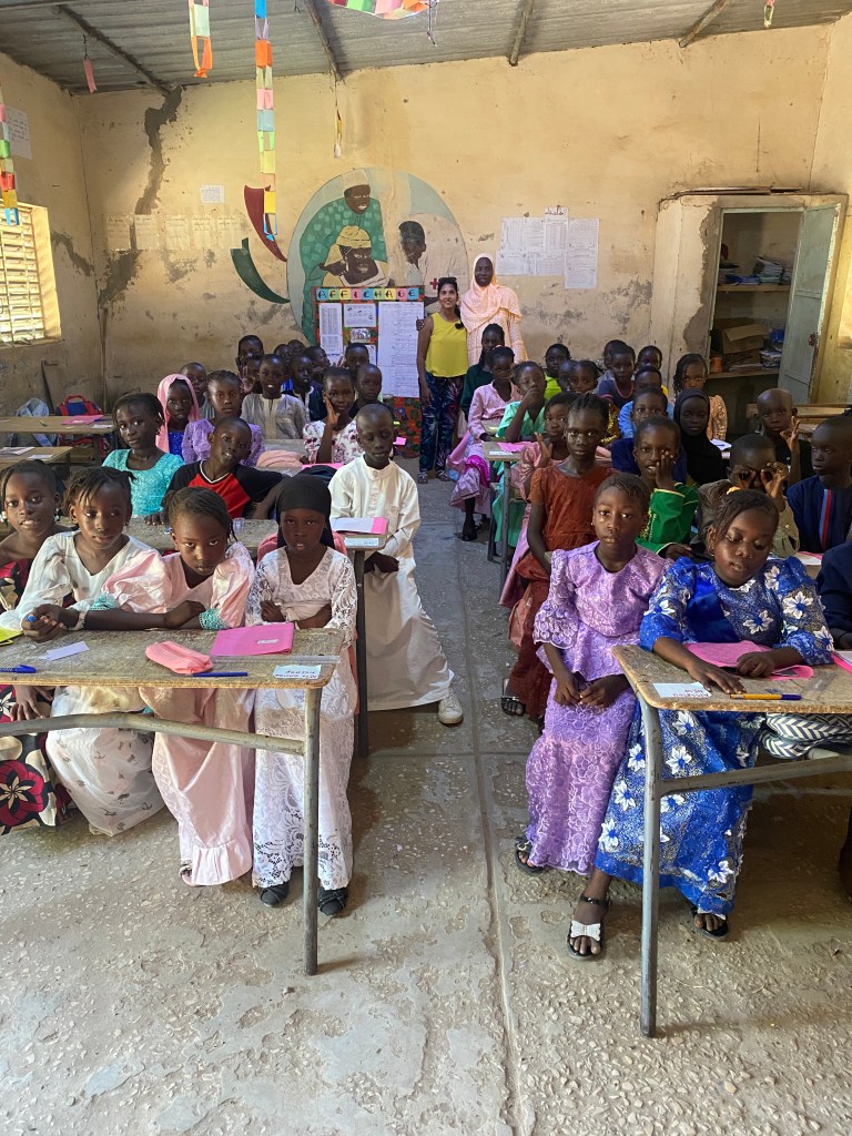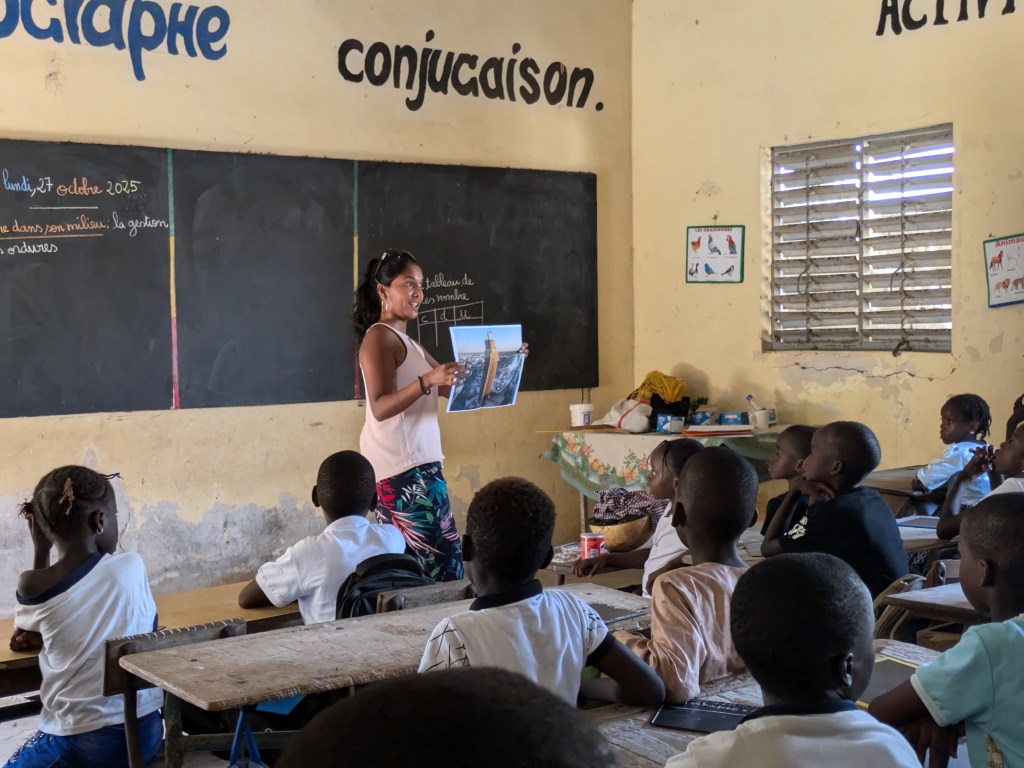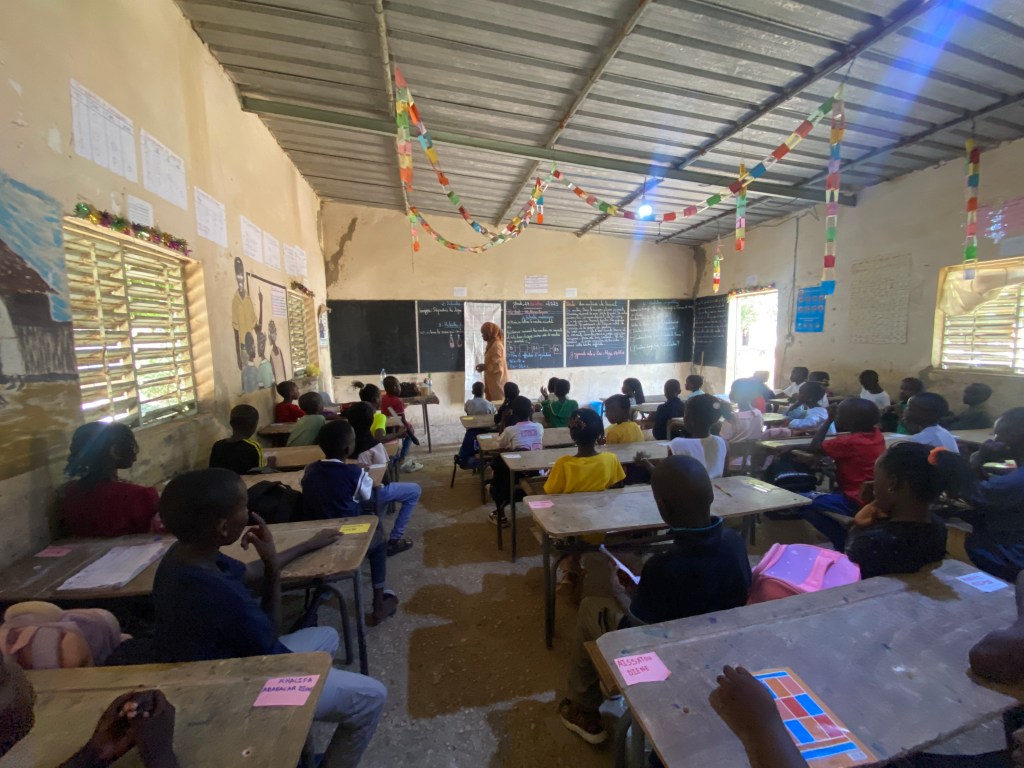 Jeudi 23 octobre 2025, Emilie Bluteau-Evrard est allée passer la journée avec sa correspondante, Ndeye Penda Diop, à l’école Badara Mamaya Sene (ex Fass), avec une classe de 81 élèves.