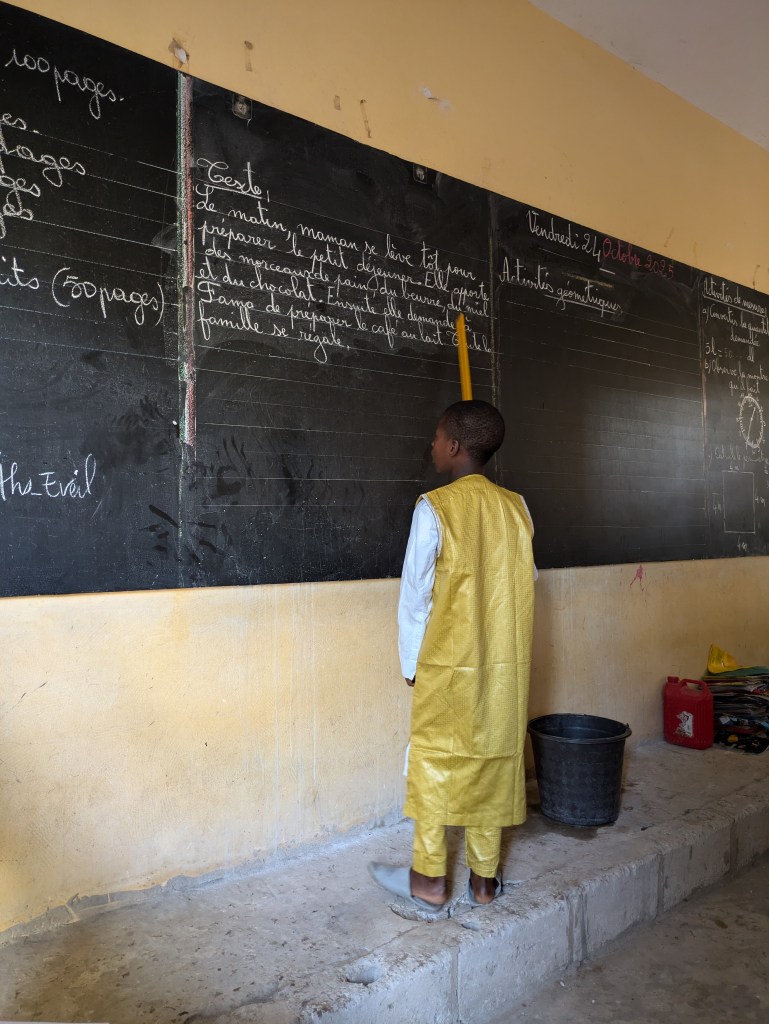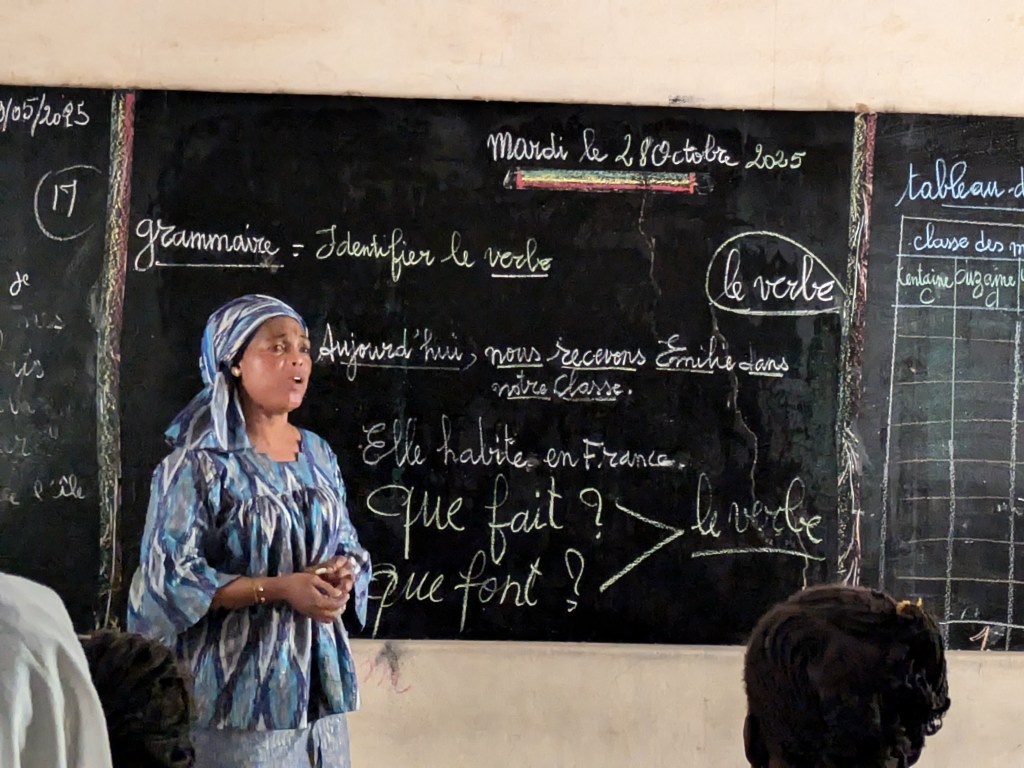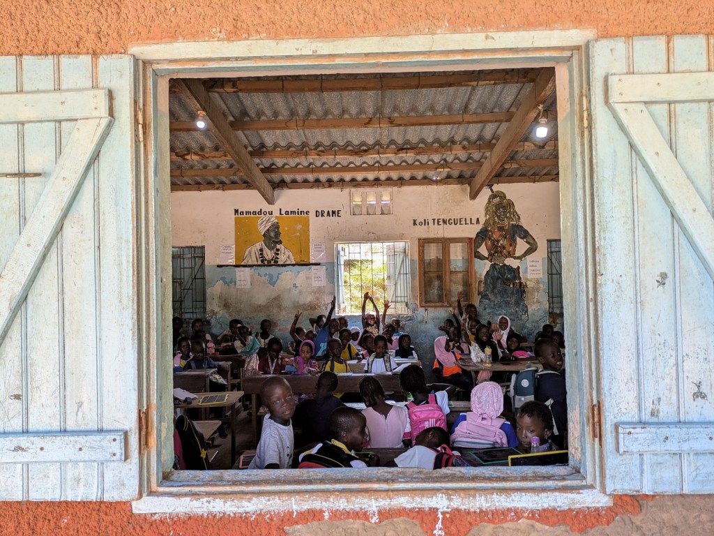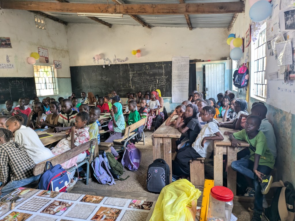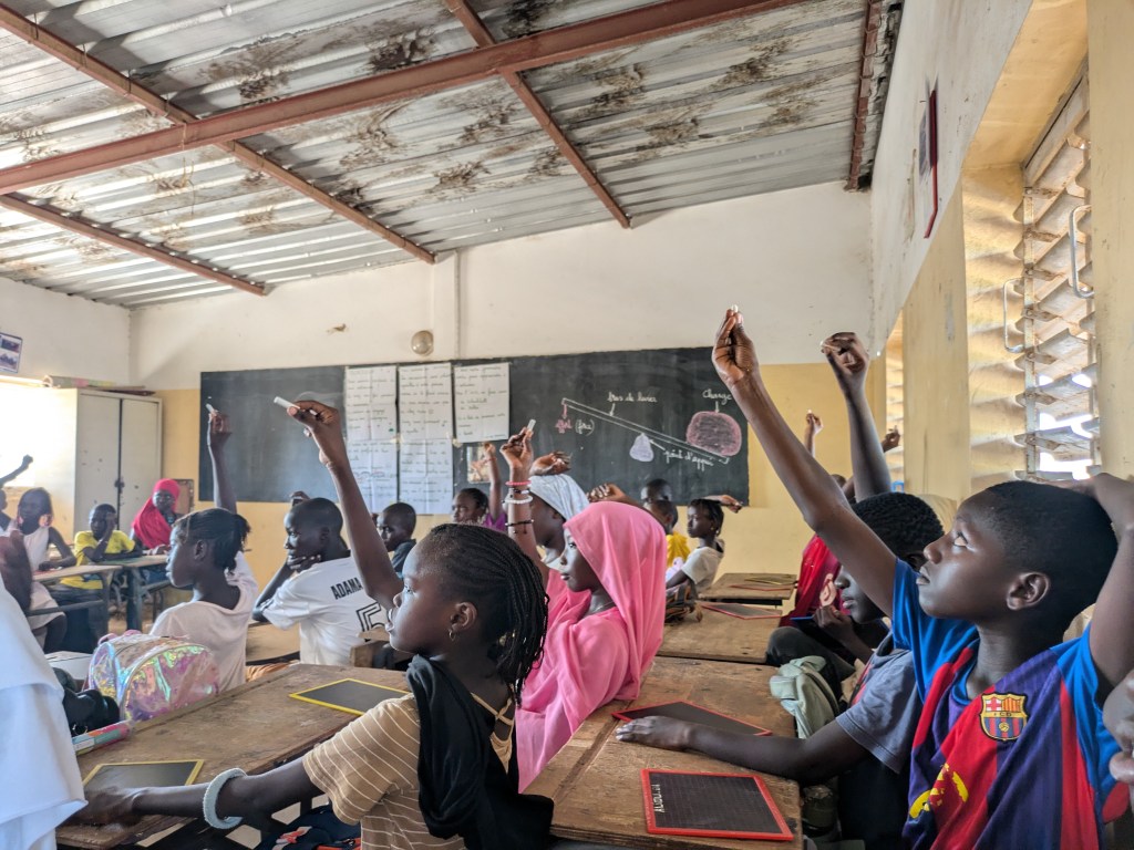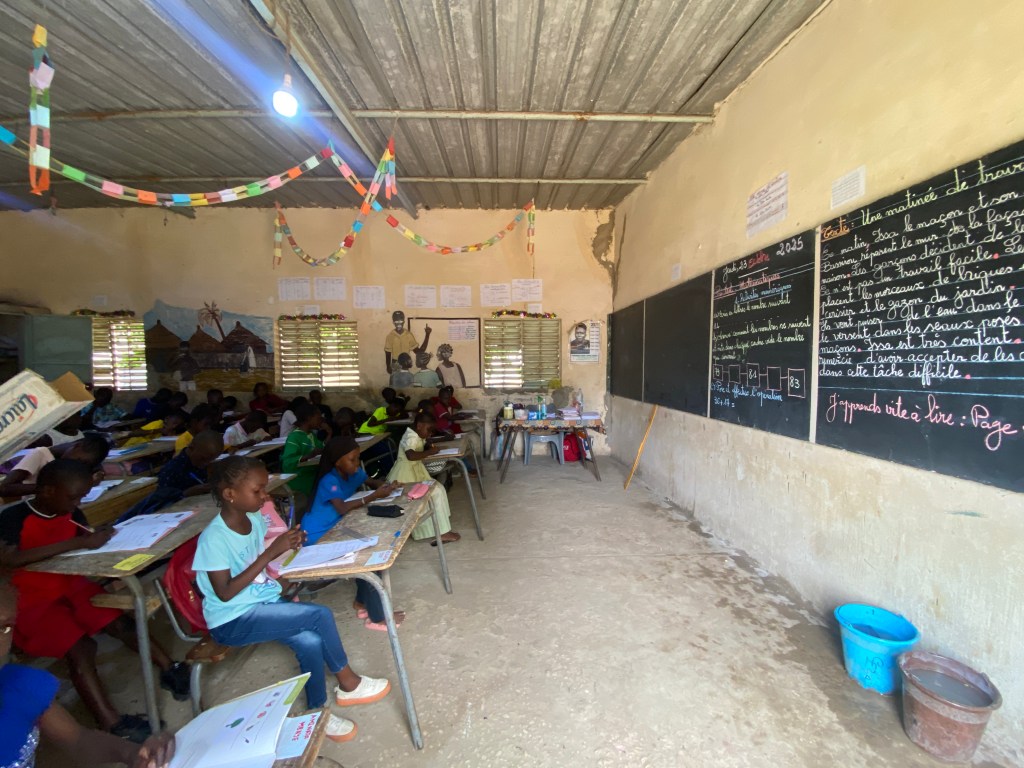 Jeudi 23 octobre 2025, Emilie Bluteau-Evrard est allée passer la journée avec sa correspondante, Ndeye Penda Diop, à l’école Badara Mamaya Sene (ex Fass), avec une classe de 81 élèves.