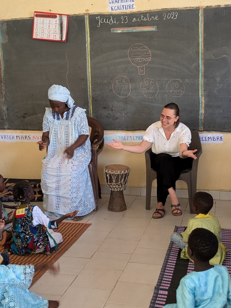 Claire David est allée à l’école Shérif 3, avec Ndeye Binta NDaw, dans une classe de CP. Sans oublier la mascotte des élèves de Claire, Petit Loup, qui a aussi fait le voyage!